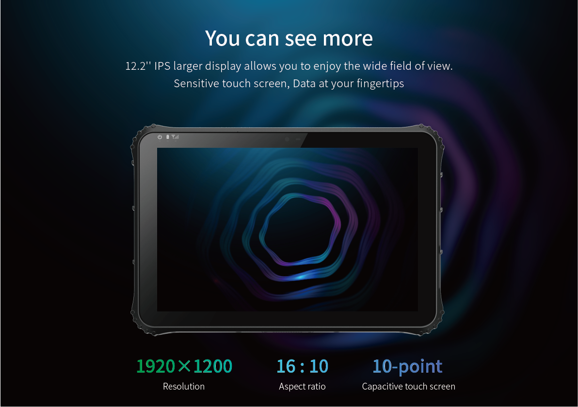 12.2 inch IPS 16:10, 1920x1200, 280nits (Optional 650nits) |