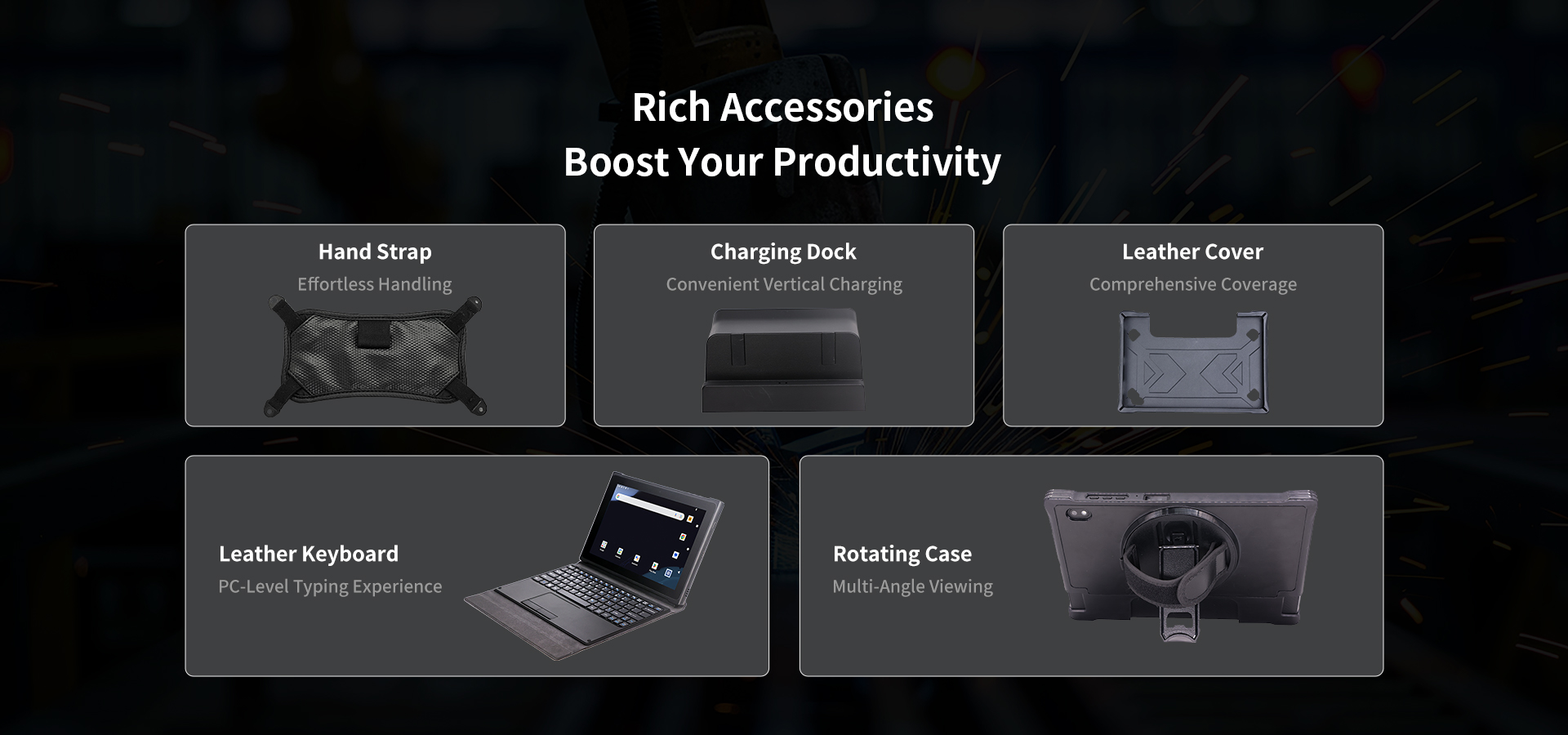 ·Hand strap, charging dock, leather cover, leather keyboard,rotating case and more accessories
